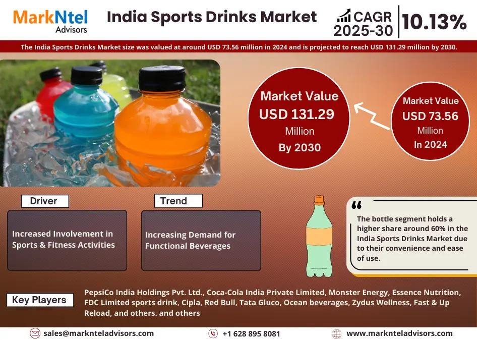 MarkNtel Advisors, a leading market research and consulting firm, has announced the release of its latest study titled India Sports Drinks Market Research Report: Forecast (2025-2030). This report provides a detailed assessment of the India Sports Drinks Market, covering its evolving dynamics, emerging trends, key growth drivers, major challenges, and competitive landscape.