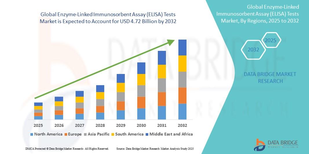 The global enzyme-linked immunosorbent assay (ELISA) tests market size was valued at USD 2.70 billion in 2024 and is expected to reach USD 4.72 billion by 2032, at a CAGR of 7.23% during the forecast period