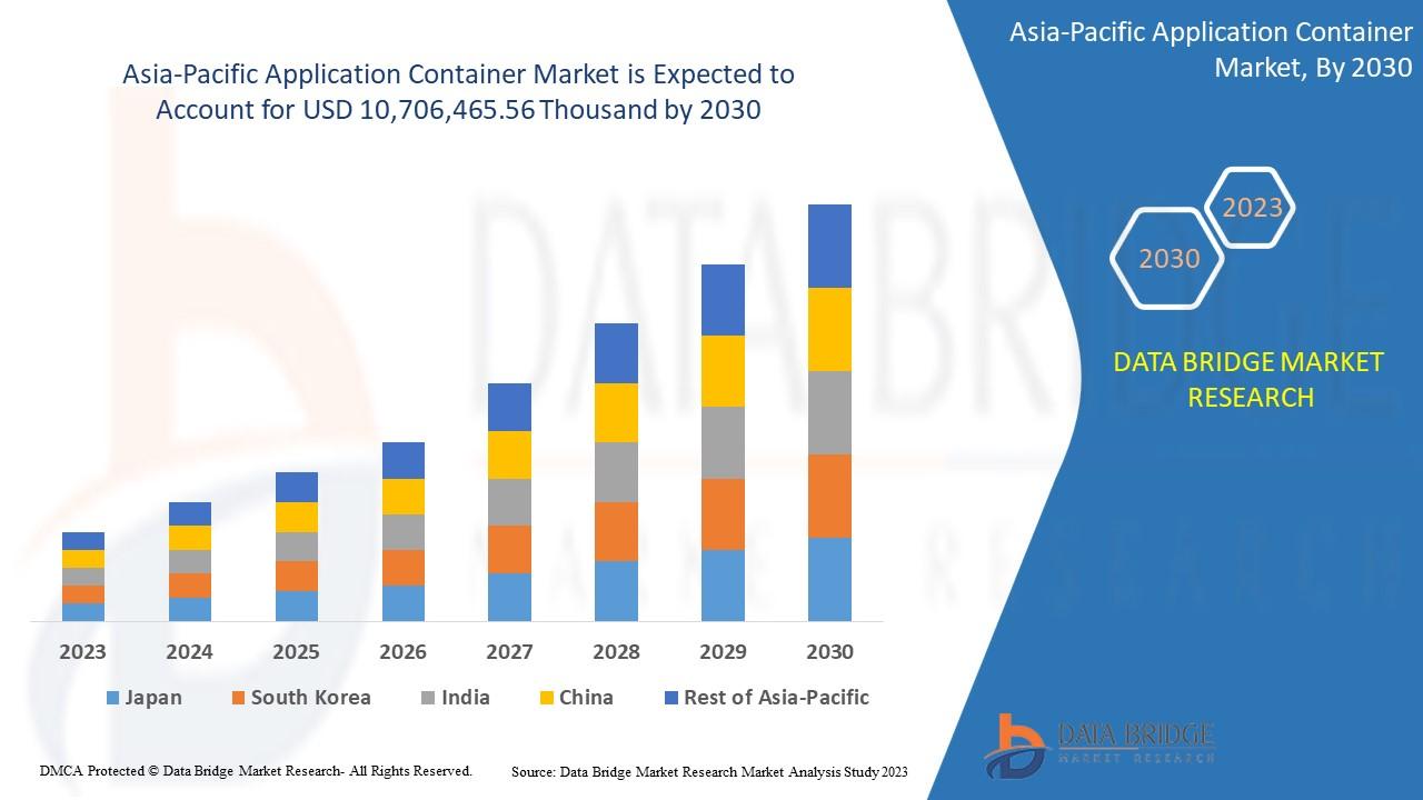 Data Bridge Market Research analyses that the application container market is expected to reach the value of USD 10,706,465.56 thousand by 2030, at a CAGR of 34.4% during the forecast period.Asia-Pacific Application Container Market research report is a verified and consistent source of information that puts forth a telescopic view of the existing market trends, emerging products, situations and opportunities. This information holds an immense significance to drive business towards the success. The industry report comprises of explicit and up to date information about the consumer’s demands, their likings, and their variable preferences about particular product. Asia-Pacific Application Container Market report all-inclusively guesstimates general market conditions, the growth scenario in the market, likely restrictions, major industry trends, market size, market share, sales volume and future trends.
