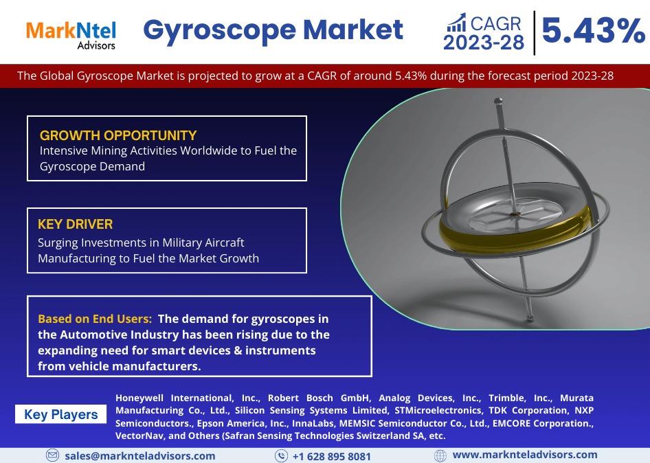 MarkNtel Advisors, a leading market research and consulting firm, has announced the release of its latest study titled Gyroscope Market Research Report: Forecast (2023-2028). This report provides a detailed assessment of the Gyroscope Market, covering its evolving dynamics, emerging trends, key growth drivers, major challenges, and competitive landscape.
