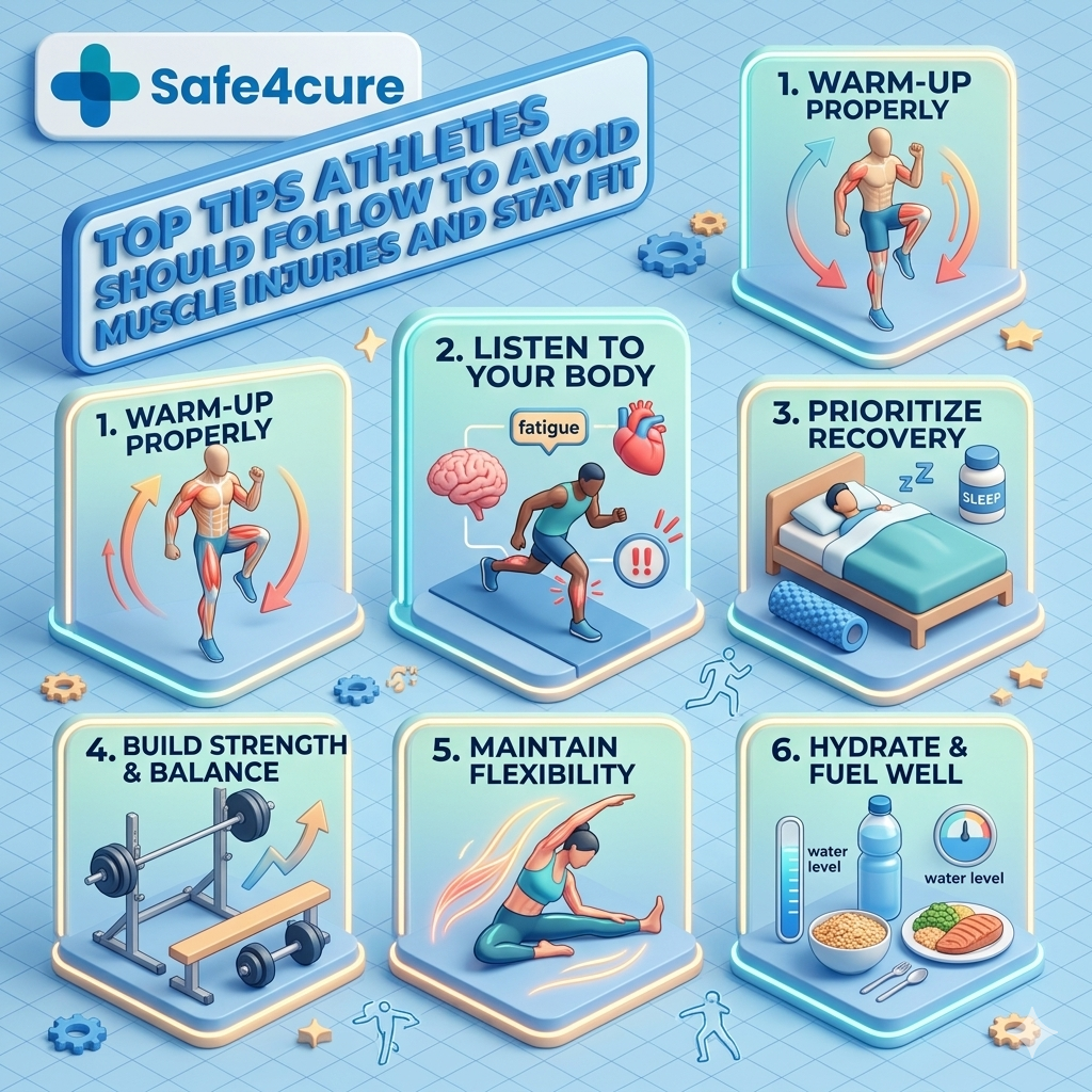 Preventing muscle injuries as an athlete requires a multifaceted approach: proper warm-up, load management, eccentric strength, sleep, nutrition, and listening to your body. When injuries do happen, prompt treatment with the best medicine for muscle strain—such as soma tablets—can accelerate recovery and get you back in the game safely. Always purchase medications from trusted sources like Safe4cure and follow medical advice.