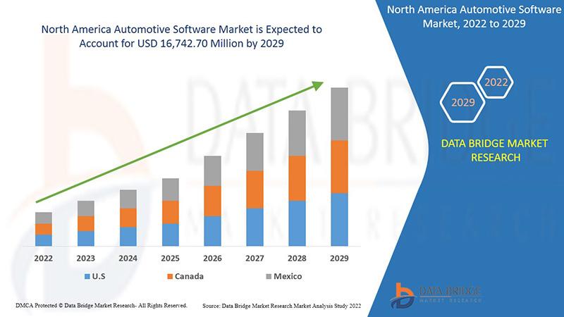 Data Bridge Market Research analyses that the automotive software market is expected to reach the value of USD 16,742.70 million by 2029, at a CAGR of 17.6% during the forecast period. The North America Automotive Software Market report puts light on the change in the market which is taking place due to the moves of key players and brands such as product launches, joint ventures, mergers and acquisitions that in turn modifies the view of the global face of North America Automotive Software Market industry. This market report takes into account myriad of aspects of the market analysis which today’s businesses call for. To make the report outstanding, most up-to-date and advanced tools and techniques are used so that client achieves maximum benefits. The North America Automotive Software Market report also includes the market drivers and market restraints that are derived from SWOT analysis.