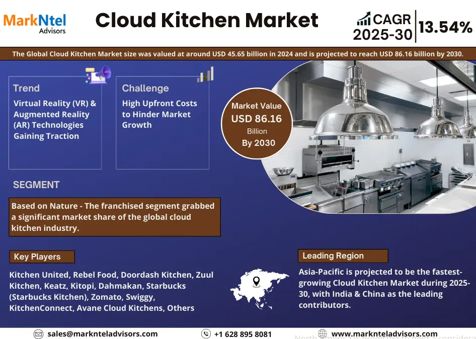MarkNtel Advisors, a leading market research and consulting firm, has announced the release of its latest study titled “ Global Cloud Kitchen Market Analysis, 2025-2030.”
